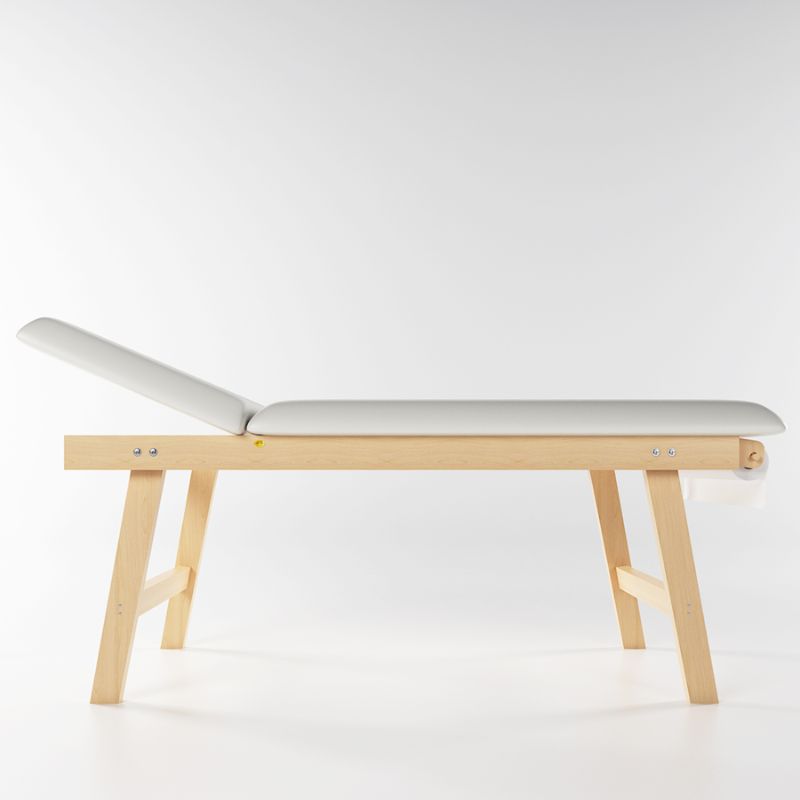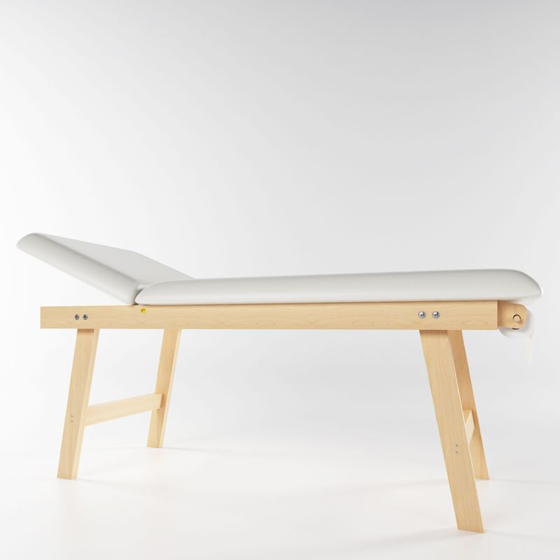 Realizzato in legno multistrato di betulla nella colorazione legno Noce, completo di cuscineria in skai lavabile cucita sartorialmente in due colorazioni standard a scelta: Bianco o Beige. La caratteristica principale del lettino TRIA è la cuscineria tripartita di cui è dotato. Il lato poggia testa e il lato poggia piedi sono resi mobili grazie ad appositi sistemi metallici che rendono il prodotto allo stesso tempo lettino o poltrona in base alle esigenze dell’utilizzatore. Il lettino TRIA è dunque DUAL USE. E’ corredato di un’utilissima mensola porta oggetto a doghe e di pratico porta rotolo.