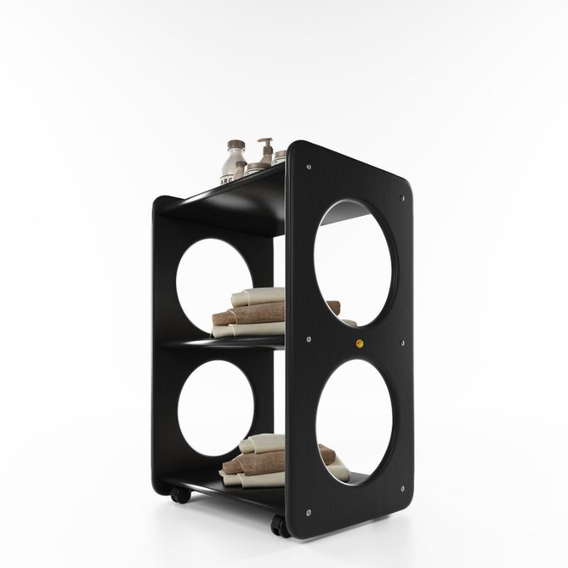 Realizzato in legno multistrato di betulla in due colorazioni legno standard: CILIEGIO e WENGÉ. Il carrello in legno ENEA è corredato di tre utilissimi ripiani porta oggetto e ruote direzionali che lo rendono estremamente pratico e funzionale. Accessorio fondamentale per ogni cabina estetica, un vero e proprio braccio destro per il professionista.