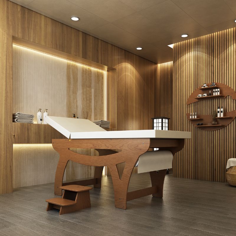 Realizzato in legno massello di faggio Pollmeier in color ciliegio, con imbottitura in espanso 25/D ed un rivestimento in skai lavabile in tre colorazioni a scelta, Beige, Verde o Nero. Il lettino GIANO è molto utile a tutti i professionisti che hanno la necessità di trattare alternativamente torace e arti superiori o inferiori grazie a testata e pediera regolabili in altezza attraverso l’utilizzo di apposite cerniere in acciaio zincato.