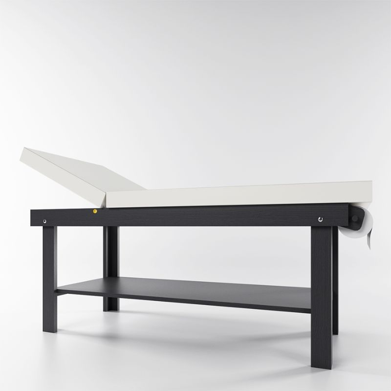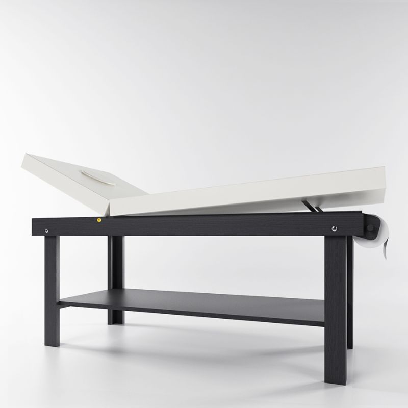 Realizzato in legno massello di faggio nella colorazione legno Wengè, completo di cuscineria in skai lavabile cucita sartorialmente in due colorazioni standard a scelta: Bianco o Beige. Minimal ed essenziale nella forma, robusto e compatto nella sostanza. Un connubio perfetto di essenzialità ed eleganza. Il lettino WELLNESS è corredato di testata regolabile grazie ad apposite cerniere in acciaio zincato, di una mensola inferiore porta oggetti e di un pratico porta rotolo.